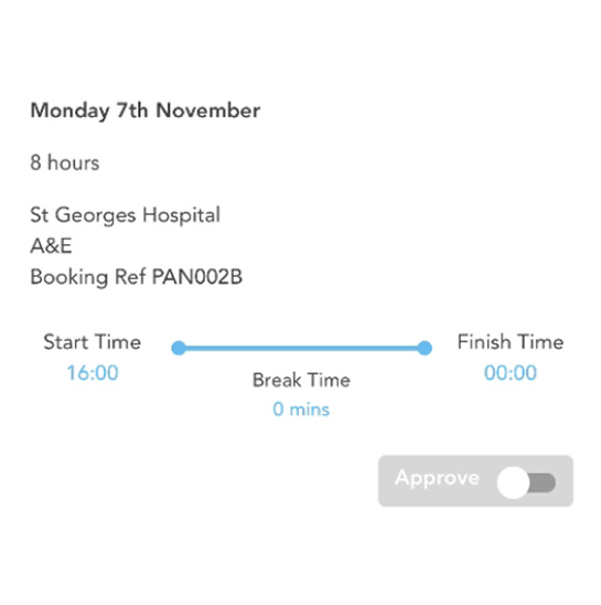 Step 3: Check the start/finish time, break time and any expenses. Once you are happy, click ‘Approve’.