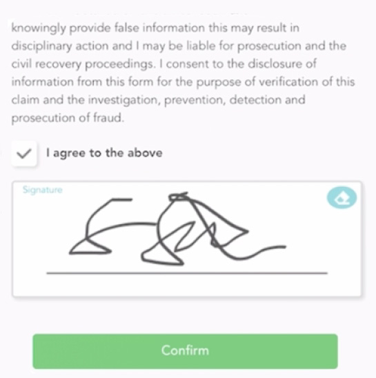 Step 5: When you are ready to send your timesheet over for review you will be required to sign a declaration and click ‘Confirm’.