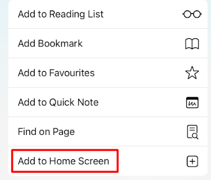 Step 3: Scroll down and select ''Add to Home Screen''.