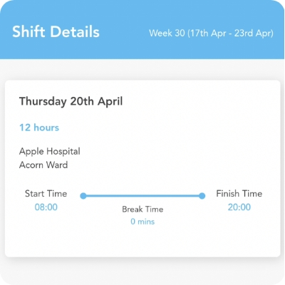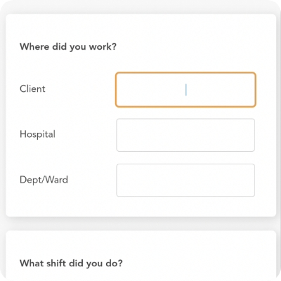 Step 3: Enter the correct Client, Hospital and Ward details, as well as the day, the start and finish times of the shift, and your break times.
